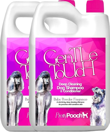 Shampoing et après shampoing pour chiens à peaux sensibles.